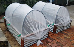 We designed, tested and refined the Crowea Garden System raised garden beds to help you create a thriving and classy looking garden. Sizes are 1.8m long x 1m wide x 45cm high Garden beds are made of colorbond steel or zinc. The untreated timber used is a local jarrah from government approved, sustainable foresty. GrowCover fabric, supported on polypipe hoops, is supplied with each raised bed. This neat cover ensures your seedlings and plants are safe from pests and inclement weather while allowing through sunlight and rain and air circulation.